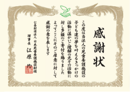 温かいご支援と、その継続的な社会的貢献に深く敬意を表し、当財団にて認定させてい