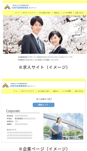こちらの求人サイトにて、企業情報と、施設で就職をしたい子ども達に向けた求人情報を掲載することができます。