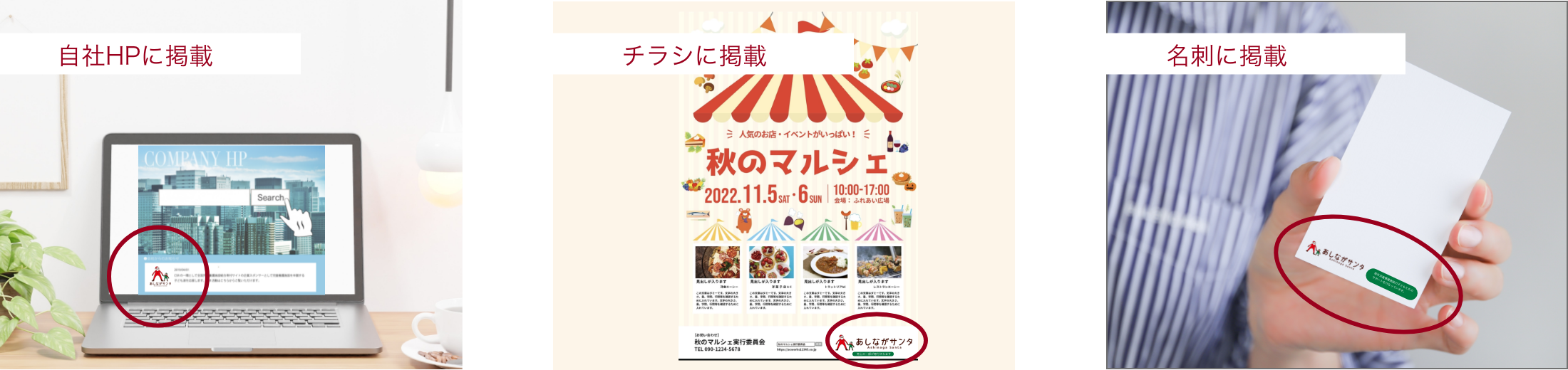 ●会社のホームページ、チラシ、名刺などにロゴを入れることができます。